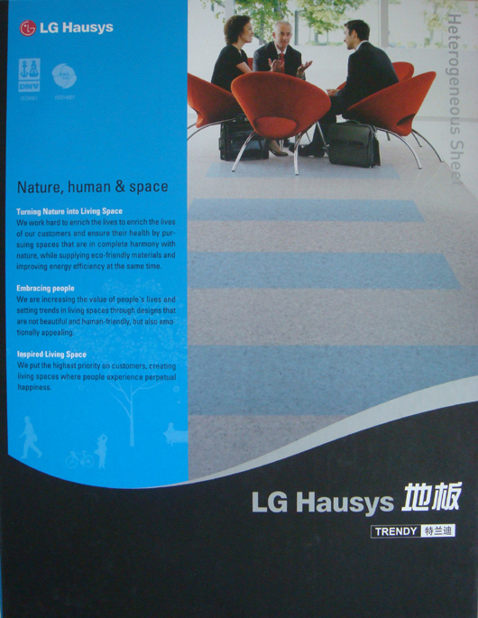 PVC地板具有步感舒适、防霉抗菌、防滑、隔声防腐、色彩丰富。极好的耐磨、防水、和防化学反应性能。不受机械移动、汽车行驶和搬移床具的影响,商业卖场、展厅、体育馆、医院、各种开放空间、办公室……等等,也用于居家、别墅,它提升了文明的施工程序,创建了优质舒适平坦的空间,多样化标致饰面材的铺贴,让生活增添了绚丽的色彩。